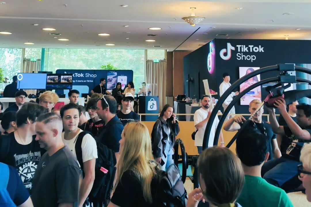 京东集团副总裁李帅在 IFA 现场发表主题演讲。图片来源:36氪出海 今年二季度刚刚解锁德、意、法三大核心欧元市场直播电商业务的 TikTok 自然也不会错过 IFA 这一良机。延续着深耕本地社群的传统,TikTok 在展会现场打造了一个线下创作者专区,以经验分享、互动体验等贴近社群的方式吸引了大量 KOL 和品牌来访。 理所当然的,TikTok Shop 的巨大 Logo 被摆放在了最显眼的位置。尽管欧洲市场目前只占据 TikTok Shop 全球 GMV 的约5%左右份额,远远落后东南亚市场,但随着德意法这三个人口基数大、消费能力强的欧元市场的接入,这一数字预计将在今年发生爆炸式的变化。