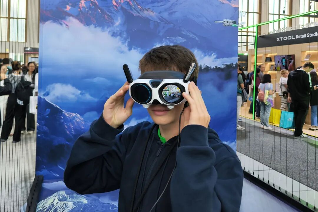Bosch 展出了一款和 Ecovacs 联合研发的清洁机器人方案。图片来源:36氪出海 备受关注的 DJI ROMO 扫地机器人则未能如约出现在大疆的 IFA 展台上。大疆为欧洲消费者们带来了新近发布的 Osmo 360 全景相机、新型号无人机、稳定器以及各类手持影音设备产品,吸引了大批粉丝前来现场体验。自从2015年在法兰克福设立欧洲总部以来,大疆已在欧洲市场耕耘了十余个年头,尽管占据着绝对的霸主地位,但无人机赛道的增长已逐渐趋于饱和。在扫地机器人、运动相机、eBike、移动能源等新领域的跨界扩张,将会是大疆在欧洲市场下一步的战略重点。从另一方面来说,DJI 这一强大品牌的入局,对这些赛道中的出海企业们则无疑意味着新的压力。 勇于接受挑战的创新者当然也不会坐以待毙。就在大疆 IFA 展台的隔壁,一家新公司展出的 8K 360度全景拍摄无人机吸引了大批爱好者排队试用。这正是由影石联合第三方孵化的影翎 Antigravity 品牌首次在线下公开亮相。这款小巧的消费级无人机除了搭载全景摄像头之外,还配备有一副 Micro OLED 屏幕的飞行眼镜,支持最高400度近视以及瞳距的校正。在试用中,全景视角能够跟随用户头部的动作进行转动,电池显示拥有24分钟左右的续航能力。 虽然最终的产品参数和定价尚未公布,操作系统和地图软件的本地化也还未完成,Antigravity 的出现对于大疆来说可谓一记迎头狙击。尽管推出了目标争夺 Insta360 市场的全景相机产品,大疆还尚未能来得及将其装备到自家的无人机产品上。Antigravity 的横空出世,既是影石面对大疆跨界攻势的直面回应,同时也开辟了一条全新的产品赛道,尤其在海外市场。从长远来看,这将会是一场有益于行业的创新力与产品力竞争。